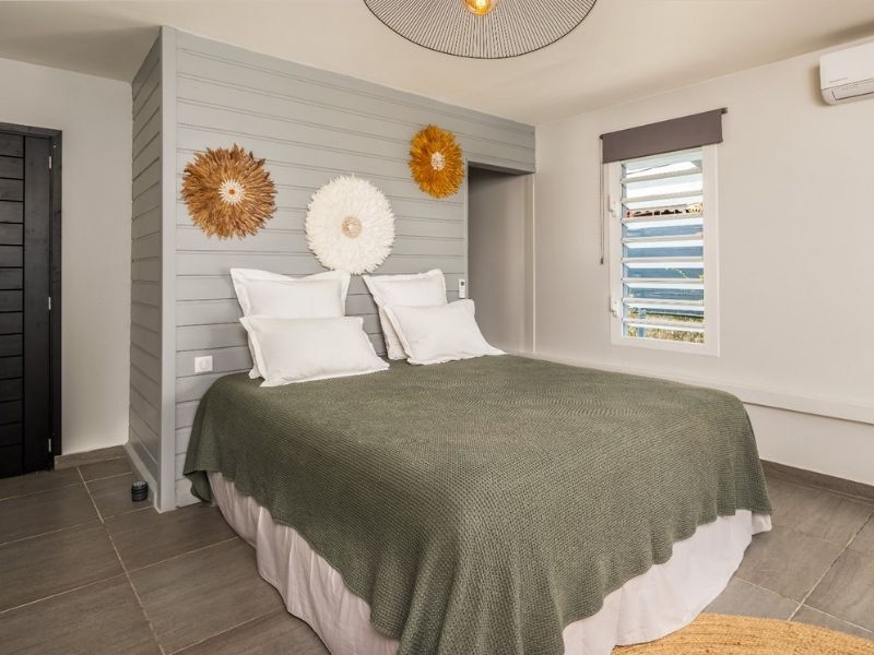 • 2 suites climatisĂ©es, Ă©quipĂ©es respectivement d'un lit King Size (200/200) et d'un lit Queen Size (160/200), chacune avec sa salle de douche privative et ses toilettes